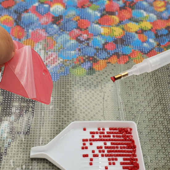 1 x printed canvasMore than enough drills to complete the painting1 x pick up pen, tray and glue set